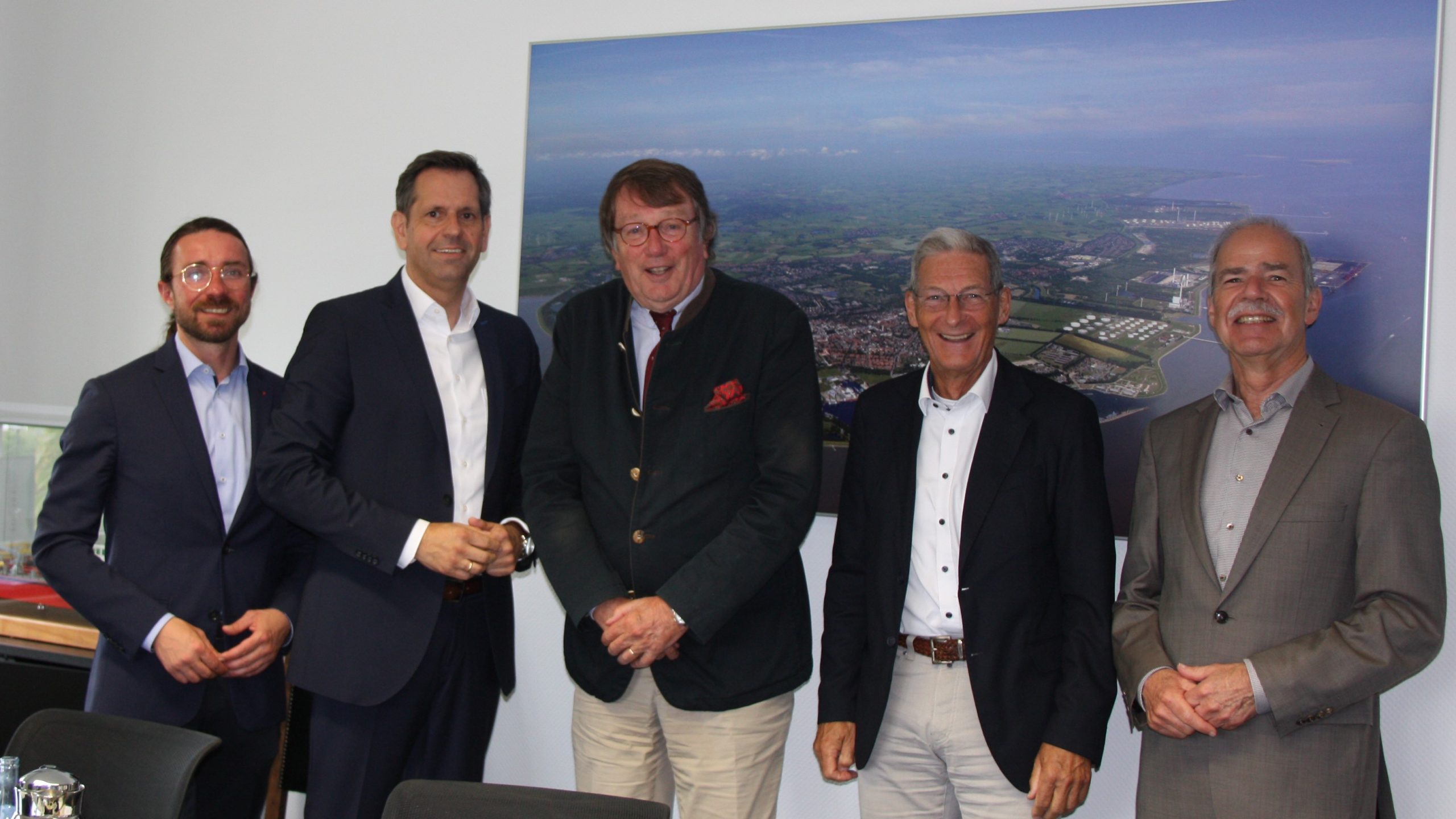 Von links MdL Marten Gäde, Nds. Wirtschaftsminister Olaf Lies, John H. Niemann Präsident der WHV e.V., Hans-Joachim Uhlendorf Vizepräsident WHV e.V. und Hans Joachim Schweinsberg Vorstandsmitglied WHV e.V.