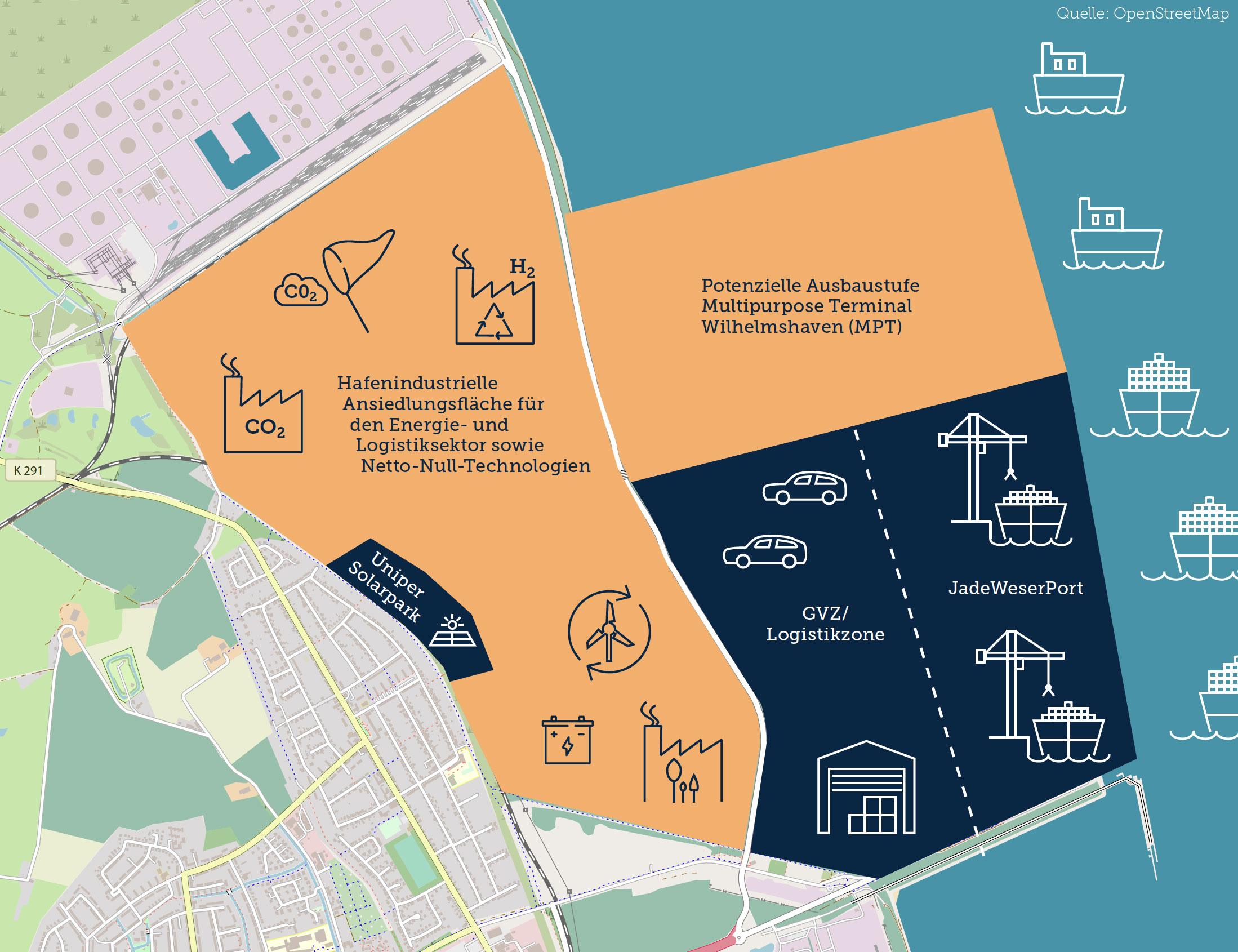 „Hafenentwicklung braucht Weitblick: Wir planen heute die Infrastruktur, die morgen gebraucht wird. Dabei entwickeln wir Wilhelmshaven strategisch und langfristig entlang der Stärken des Standortes. Gleichzeitig reagieren wir auf die Geschwindigkeit der Transformation und die Anforderungen des Marktes“, betont Holger Banik, Geschäftsführer der Niedersachsen Ports GmbH & Co. KG sowie der JadeWeserPort Realisierungs GmbH & Co. KG.